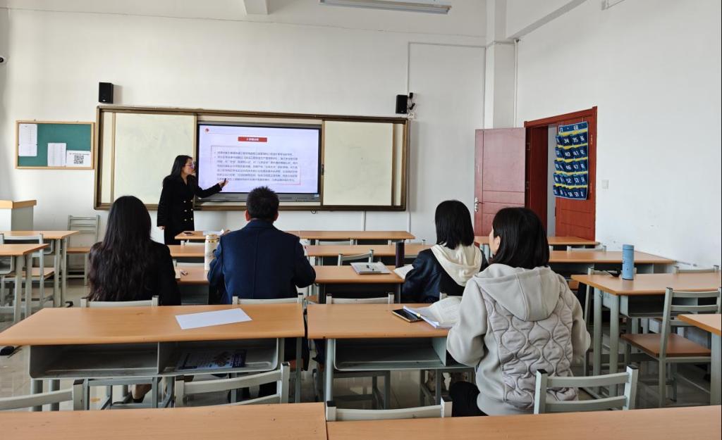 在集体研课环节,刘晓锐老师围绕教材第四章“以人民安全为宗旨”进行了示范说课。刘晓锐老师对课程的教学背景进行了分析,系统梳理了教材、学情、教学目标、教学重难点等内容,课程主要内容部分以图片导入方式展开,结合最新时政和社会热点案例对理论内容进行了深入阐释。例如,在讲解人民的文化权益时,结合体育领域“饭圈”乱象、歌手侵权行为等案例进行阐述,强调保障人民群众的切身利益。接着,张春艳老师针对教材第五章“以政治安全为根本”进行示范说课,张老师进行了教材分析、学情分析、教法分析等,在课程内容上系统梳理了政治安全的内涵、风险挑战及应对途径和方法,重点阐释了国家政权安全、制度安全、意识形态安全三大核心领域。在讲解新时代政治安全面临的风险和挑战部分,采用分组探究的新形式,突出了学生的课程主体地位。接着,与会教师围绕说课内容展开热烈研讨,分享了教学思路、教案案例等,老师们就案例选取的时效性、互动环节的设置等方面也提出了宝贵建议。