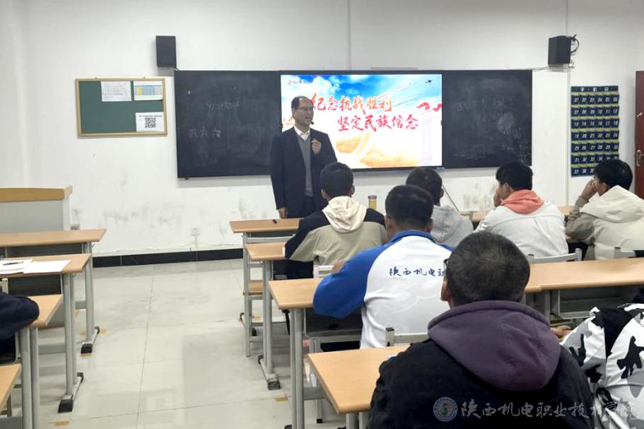 10月16日上午,陕西机电职业技术学院党委书记伊逊智在博学楼218教室为25电...