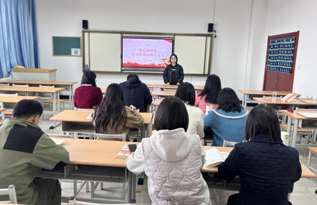 为深入学习贯彻党的二十届四中全会精神,提升党员教师的政治素养与理论水平,10月29日,概论教研室党小组在蟠龙校区博学楼409教室组织开展专题学习会。